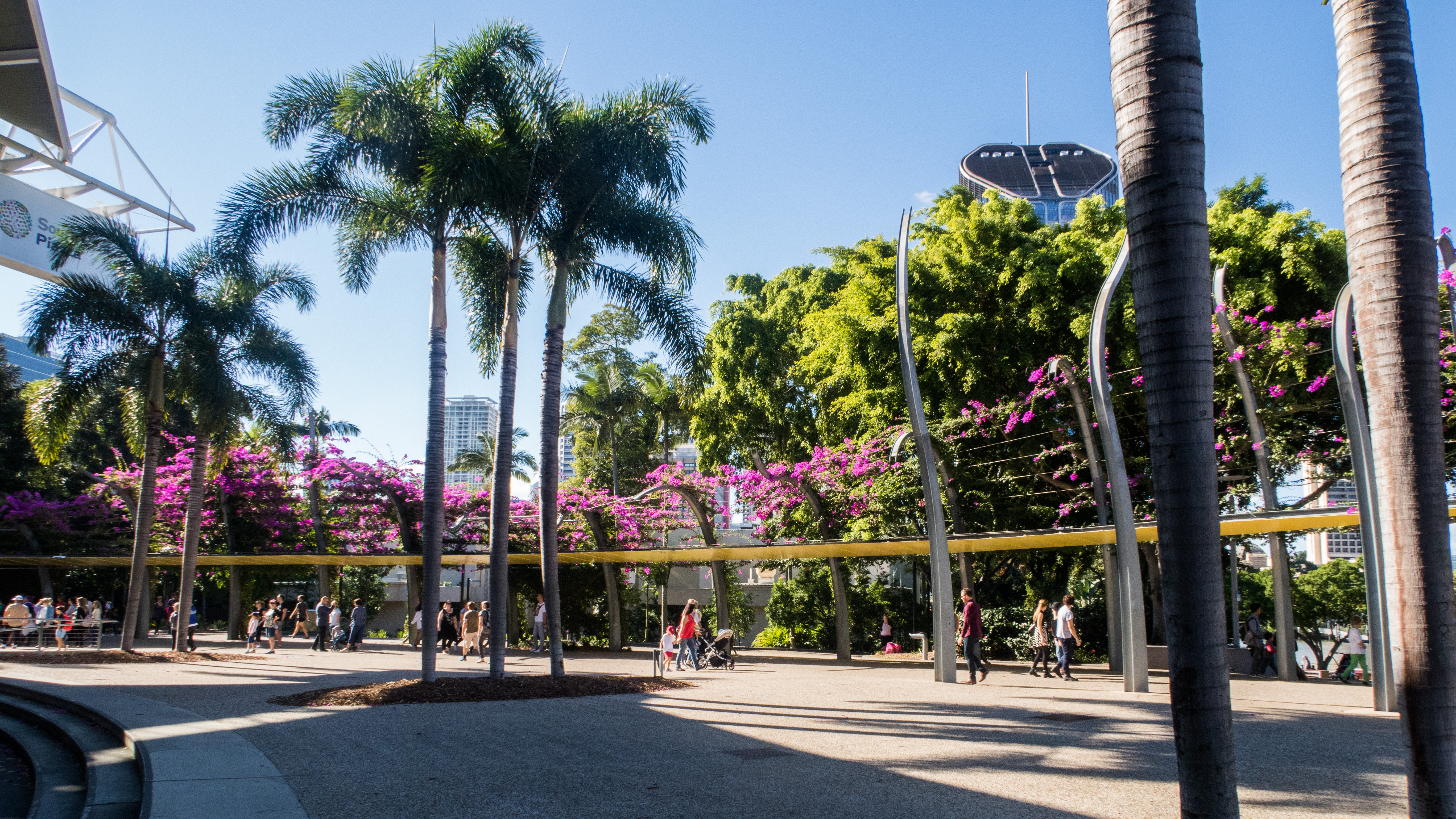 Après cette semaine, je suis fière d’avoir eu l’idée d’un petit pique-nique à SouthBank ! Il y a une piscine publique, ouverte à tous et gratuite. Je n’ai pas pu aller sur toute l’étendue de la piscine ouverte car une partie est fermée pour réparation/amélioration (c’est l’hiver, on ne va pas leur en vouloir). Et puis, pas besoin de beaucoup d’espace pour s’allonger au soleil… Munie d’une crème indice 50 tout de même !