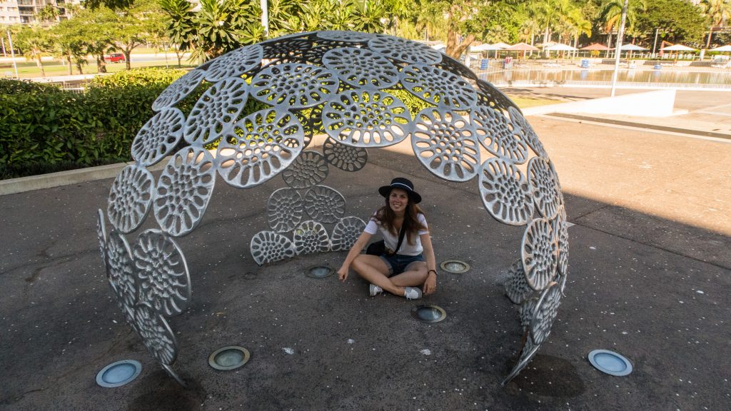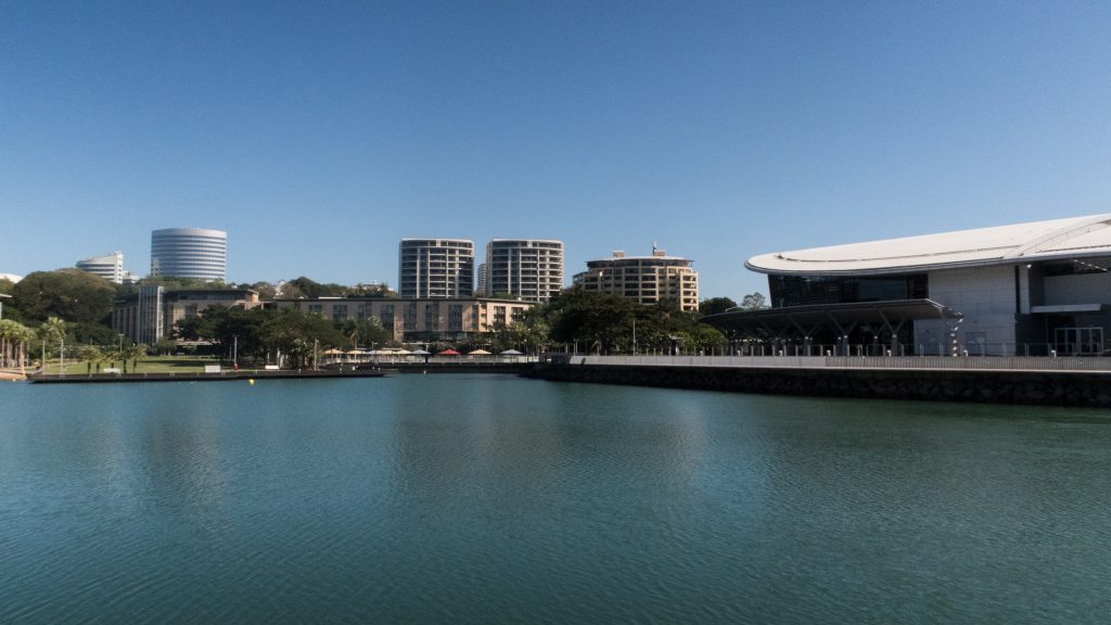 Vers 8h30, une heure bien plus acceptable pour sortir, nous attrapons nos sacs et demandons in-extremis à notre hôte Airbnb de nous déposer en ville pour une journée à Darwin. Notre excursion commence au Waterfront, la station balnéaire de Darwin. Piscine à vagues, zone de baignade en mer (avec filet anti-méduses), boutiques, restaurants et un sentier de promenade.